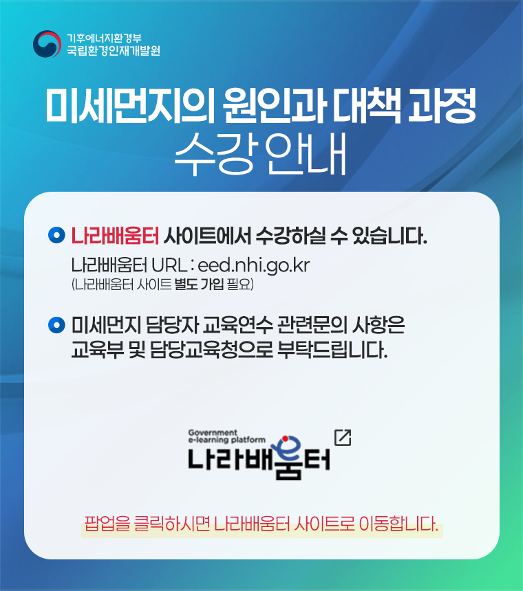 | 기타 | 국립환경인재개발원 2025년 사이버교육 운영 안내 | - | 2025-02-03 | 2567 | ||